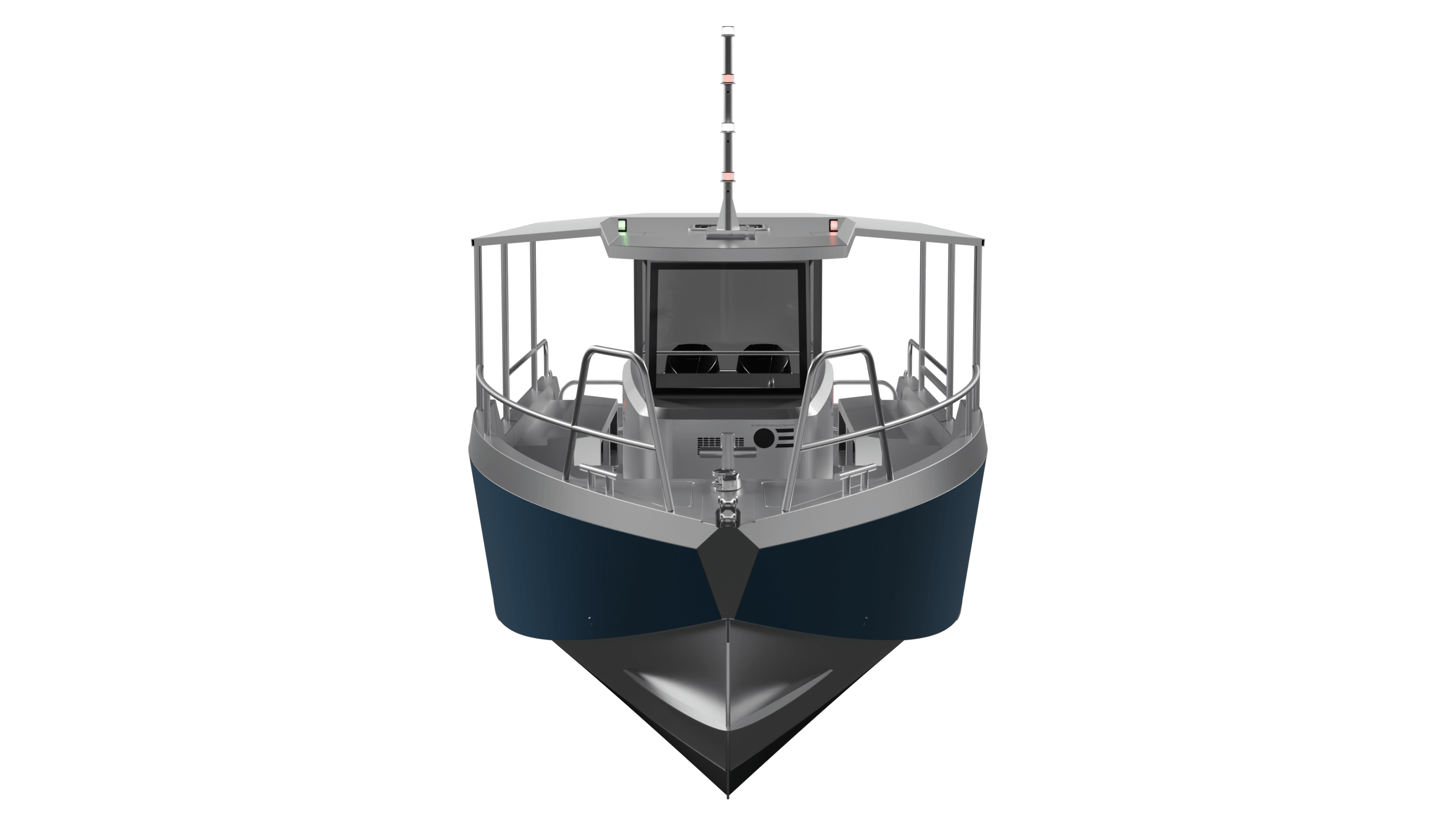 Cette carène possède des entrées d'eau fines pour faciliter le passage à la mer. Le redan d'étrave ou "barbe" permet de limiter le spray.
