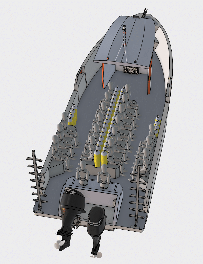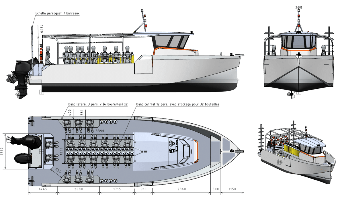 Le PIXSEA 1050 est un bateau pour 25 plongeurs et son pilote.