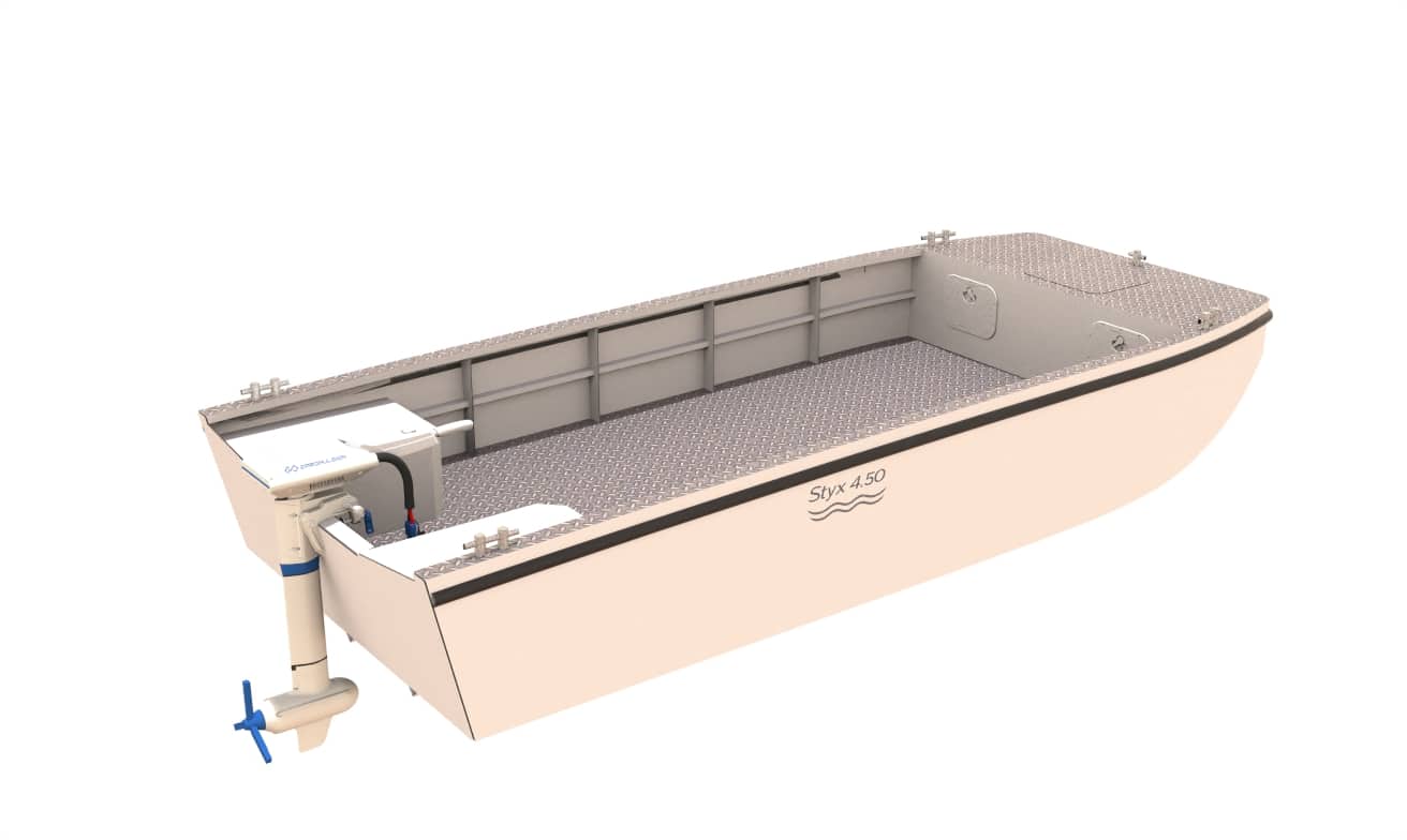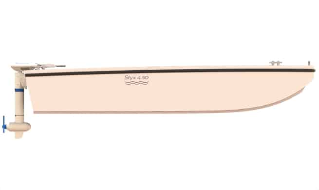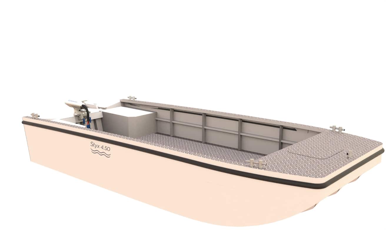 La motorisation électrique hors-bord de 6 kW (avec option de cockpit repliable) garantit des déplacements silencieux et écologiques, parfaits pour profiter de la navigation en toute sérénité. Le STYX 450 peut transporter jusqu’à 350 kg de charge utile, idéal pour les transferts d’équipage et de matériel.